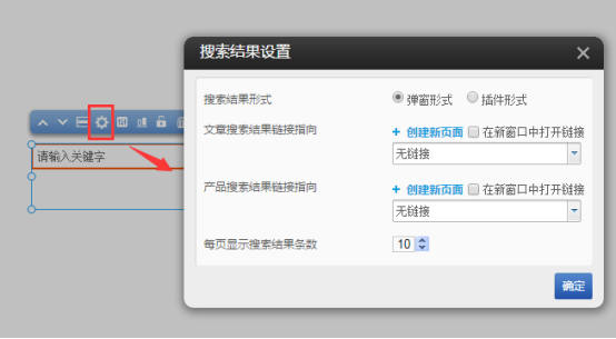 ①.添加站内搜索插件,选择搜索框,点击确定。