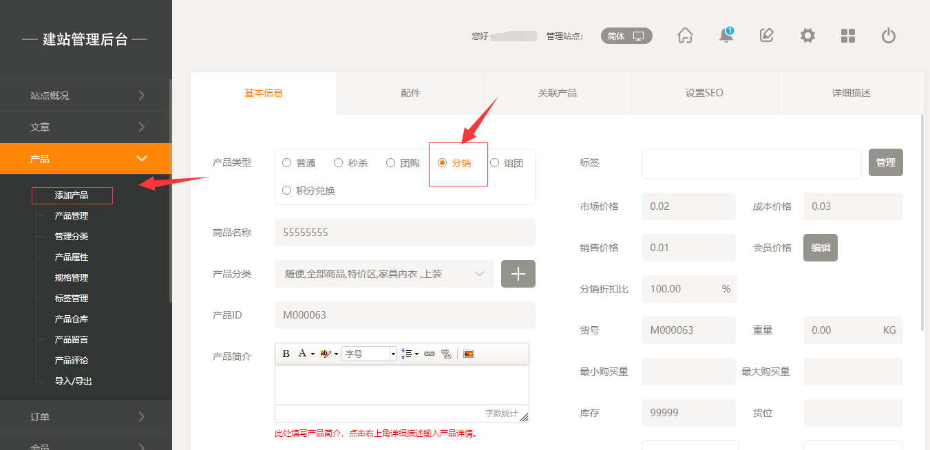 3.通过分销产品详情页直接转发页面可以建立分销关系。